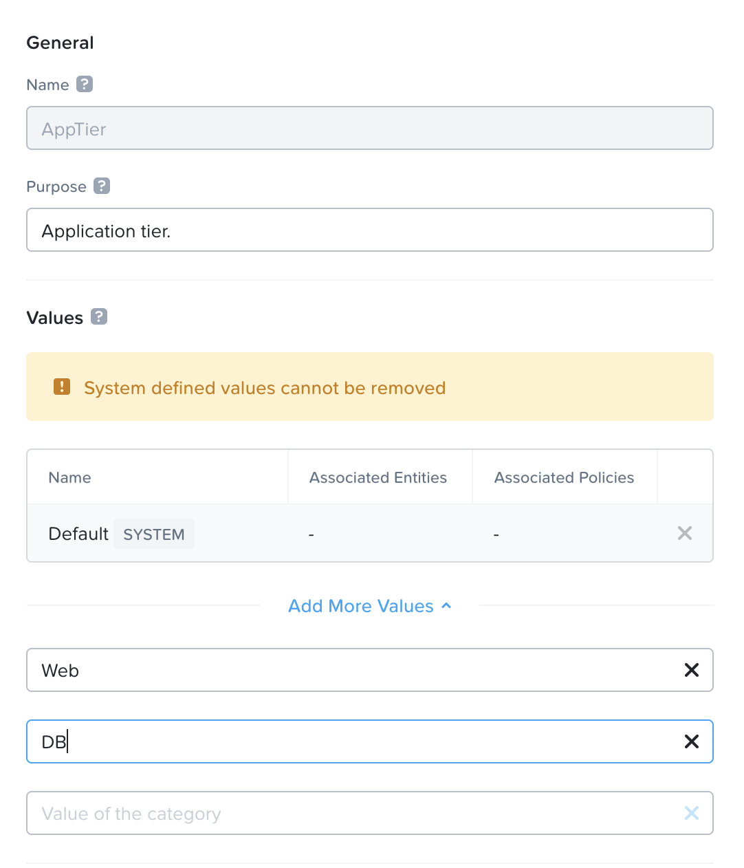 Click on the checkbox beside the Web Server VMs, Click on the Action dropdown box. Click on "Manage Categories" , search for the following: For the Web Servers,
